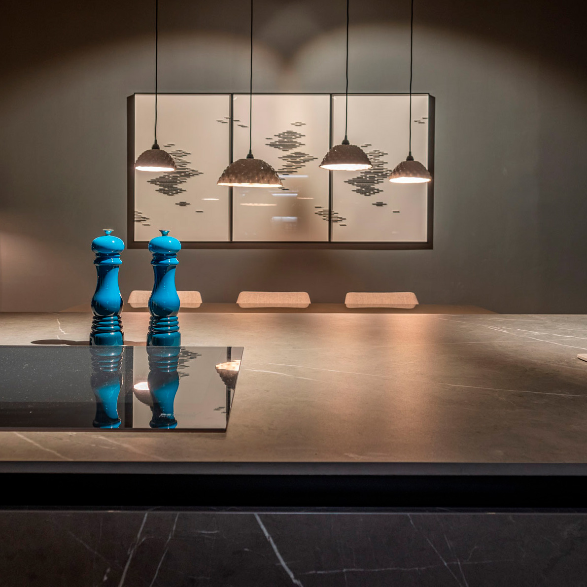 Registro fotográfico, del showroom de Santos Cocinas SCL, encargo de Opendark quienes desarrollaron el proyecto de iluminación de la obra.